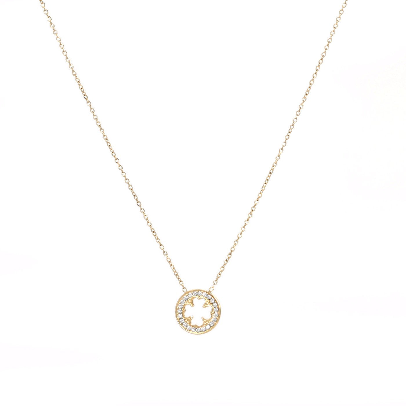 Colar em aço redondo trevo da sorte